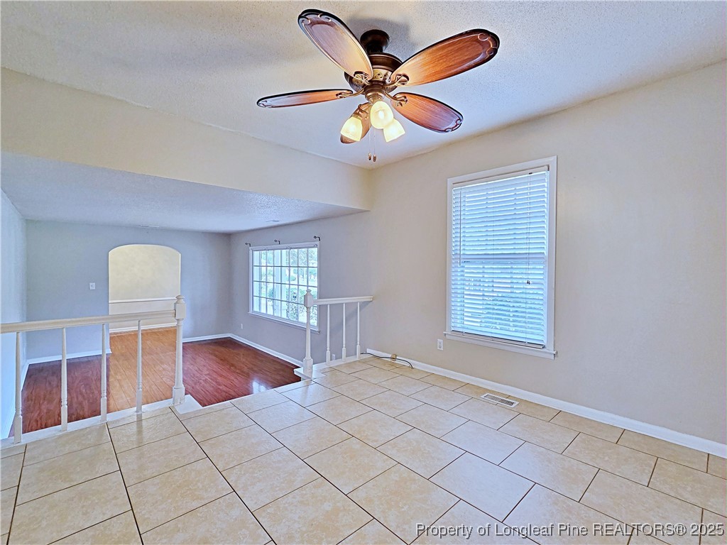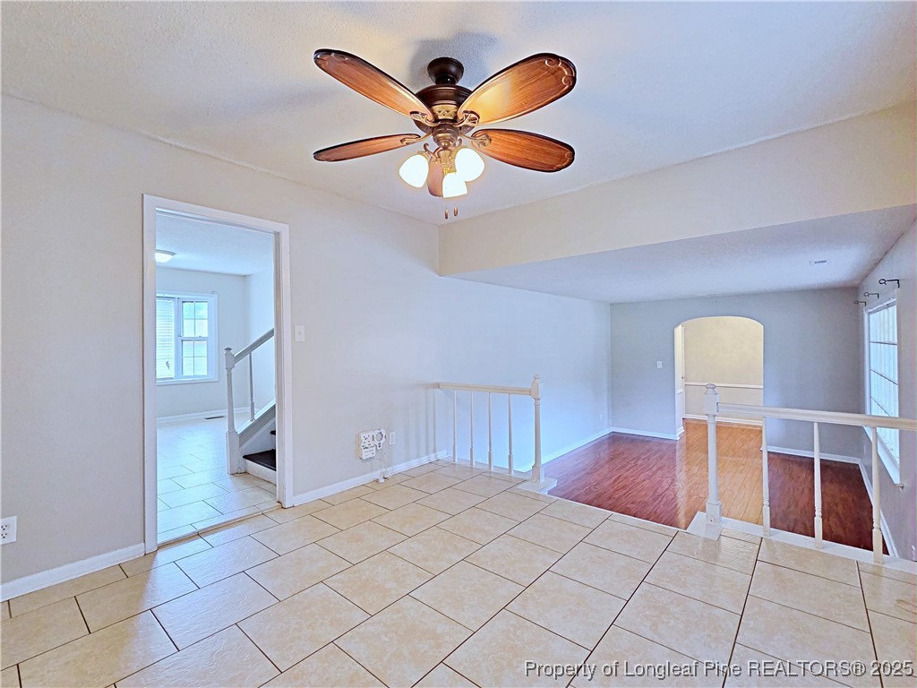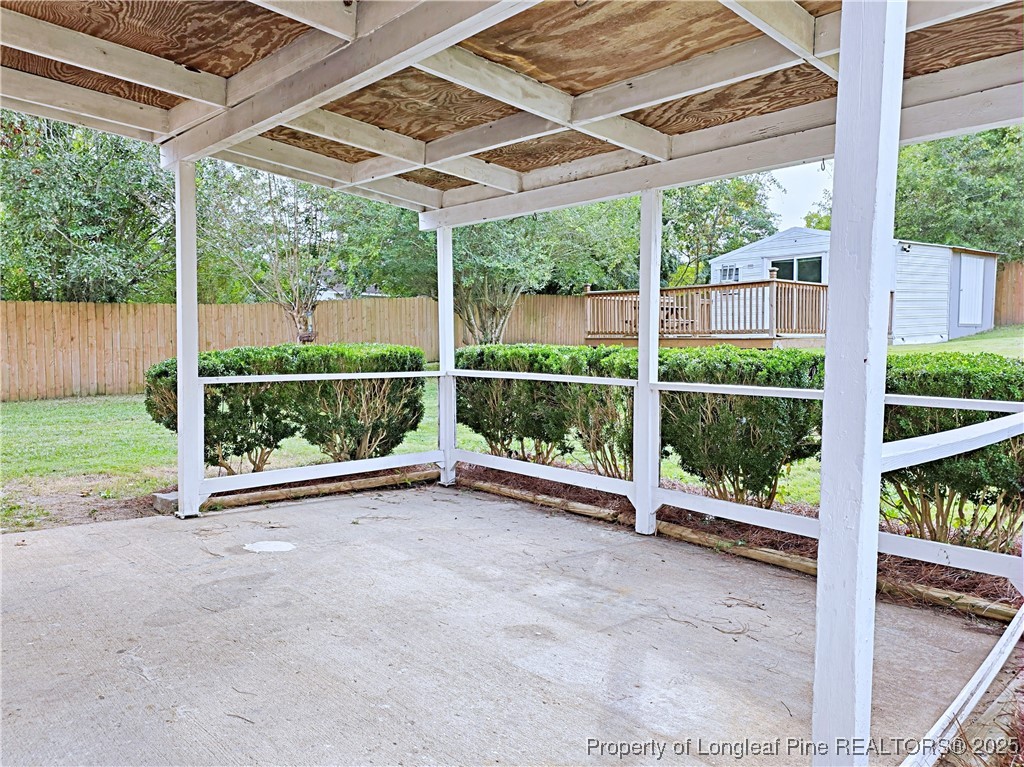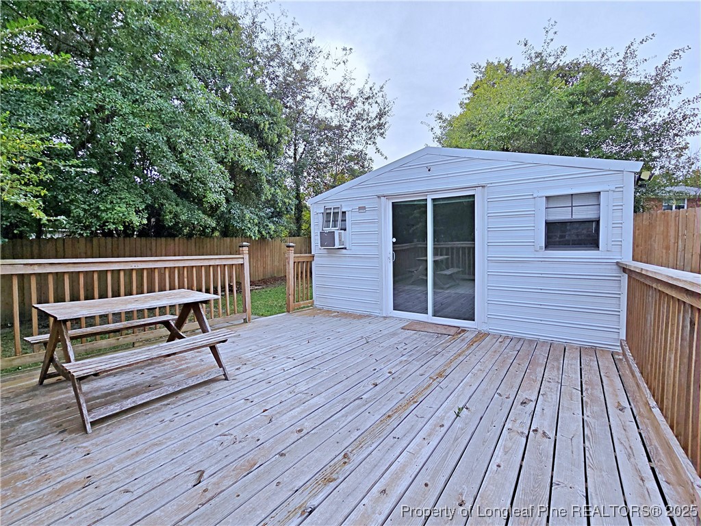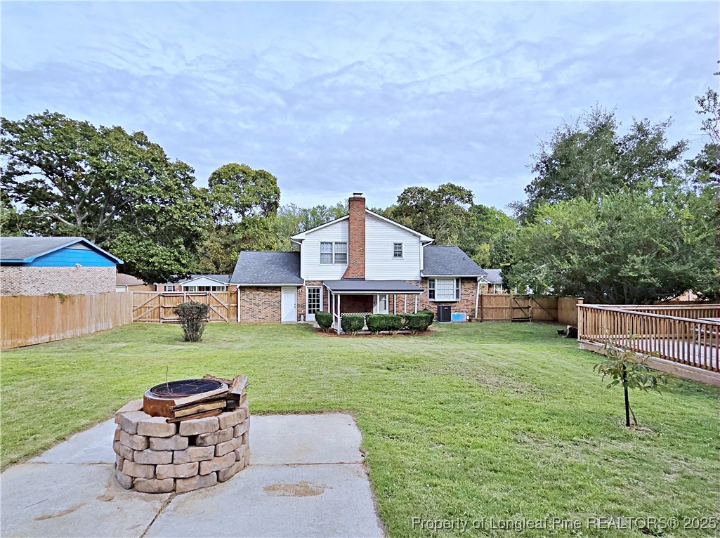 This tri-level home offering space, comfort that opens to a formal living room, cozy den with fireplace, bonus room with additional storage area, and a convenient half bath with laundry. On the middle level, you'll find a formal dining room and a bright eat-in kitchen perfect for family meals and entertaining. The upper level hosts 3 spacious bedrooms and 2 full baths to meet your family needs. Exterior highlights include a welcoming front porch, covered patio ideal for relaxing or cookouts, and a mancave/she shed with its own deck (2022) -- perfect for hobbies or extra hangout space. Recent updates include new HVAC (2023), roof (approx. 2021/22), new carpet and flooring (June 2024).