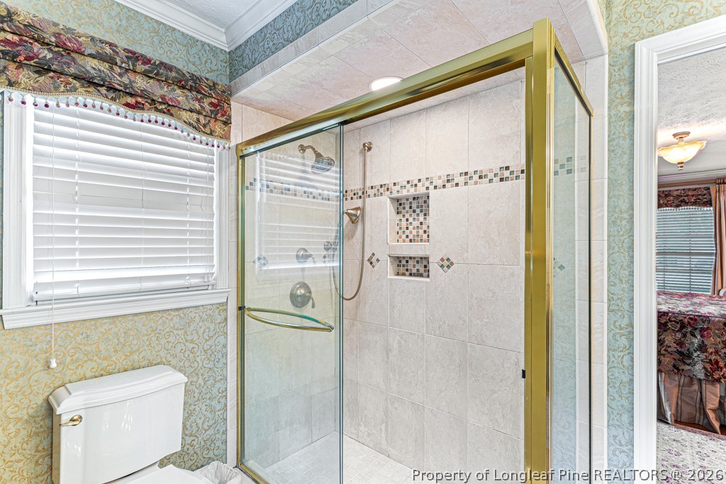 Private Resort-Style with Pool, Pond, Carolina Room & Designer Landscaping. Immaculate custom-built, one-owner home featuring a breathtaking, resort-style backyard with extensive landscaping, water features, serene pond, and exceptional privacy. Enjoy the inground pool, separate patio with covered awning, outdoor gas fireplace, and multiple flagstone walkways connecting distinct outdoor living areas, plus a guest house or workshop. Relax year-round in the Carolina room porch overlooking the private setting. Inside offers an owner's suite on the main level with dual vanities, separate tub and shower. Updated kitchen with granite countertops and eat-in area opens to a spacious family room with gas fireplace and custom mantel. Formal living and dining rooms are perfect for entertaining. Upstairs includes two bedrooms plus an additional bedroom/office with custom built-ins. Features include Anderson replacement windows and 3/4-inch hardwood floors on the main level and upstairs hallway. Laundry room and water heater located in garage. One of a kind property