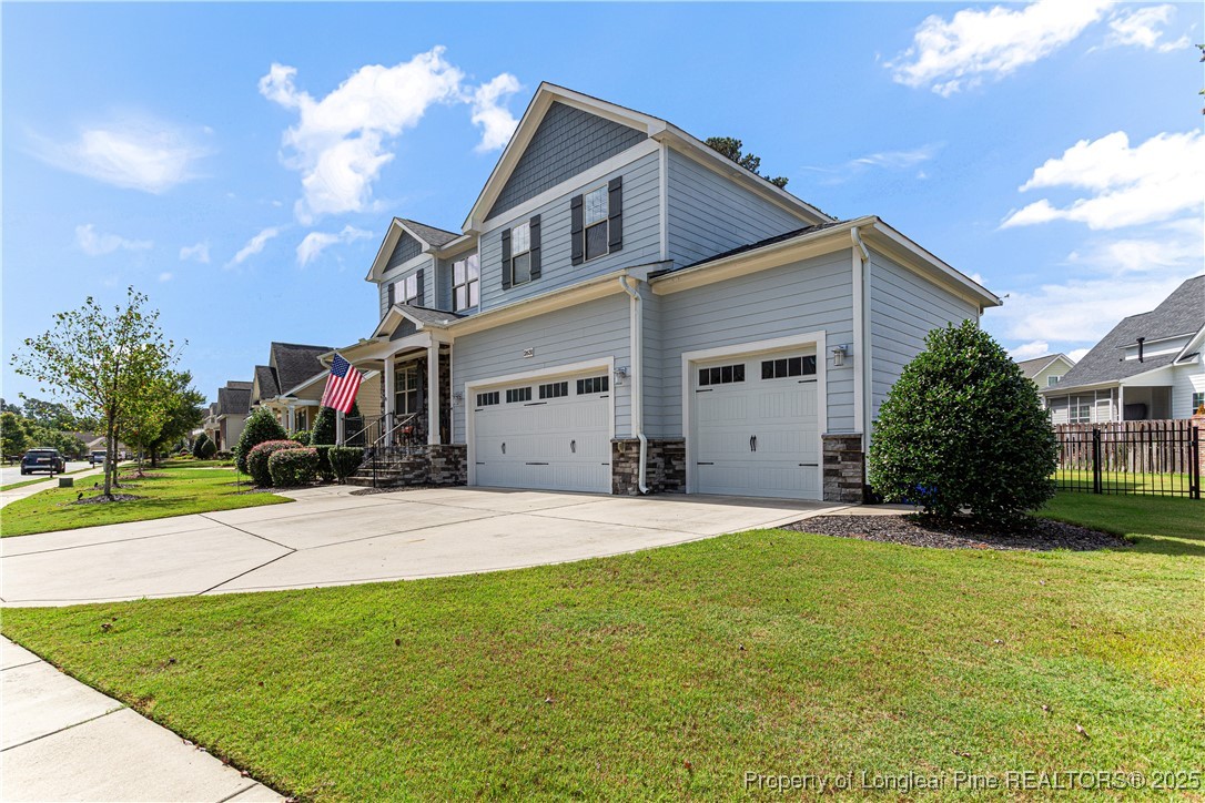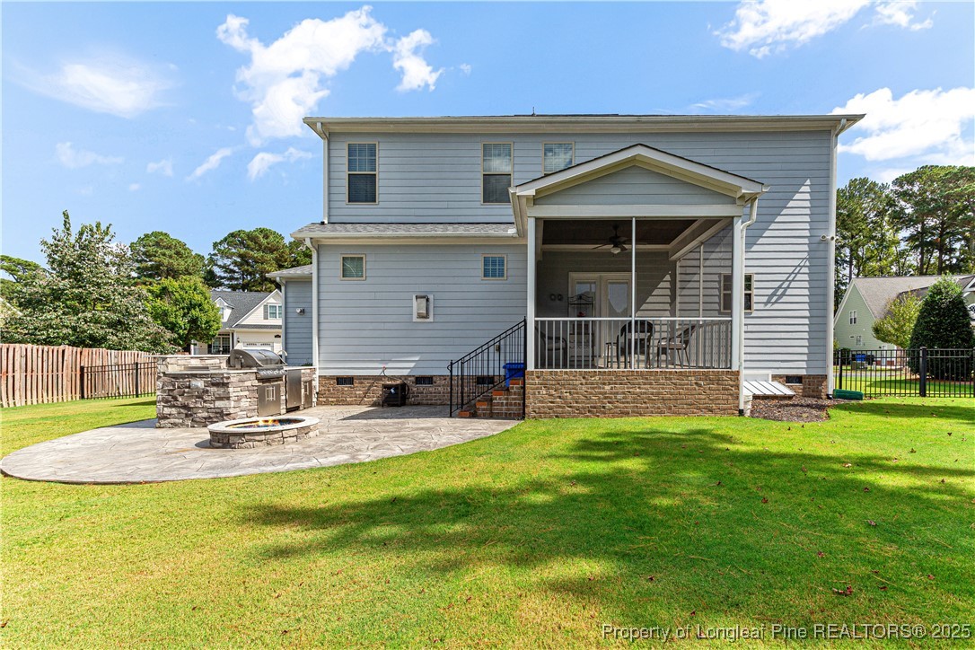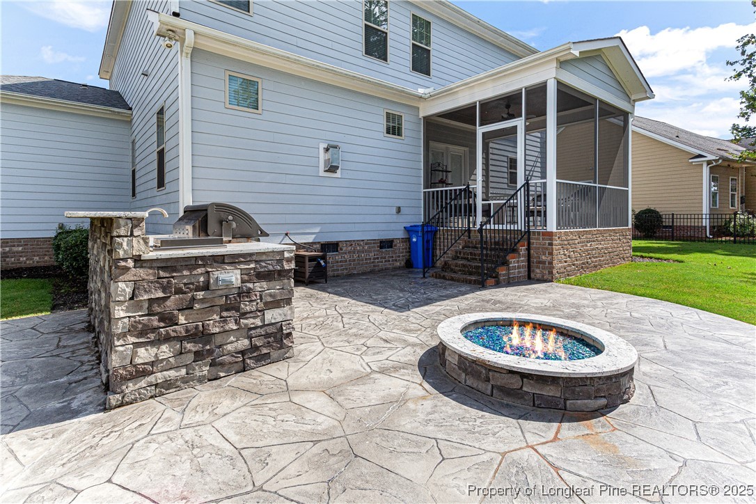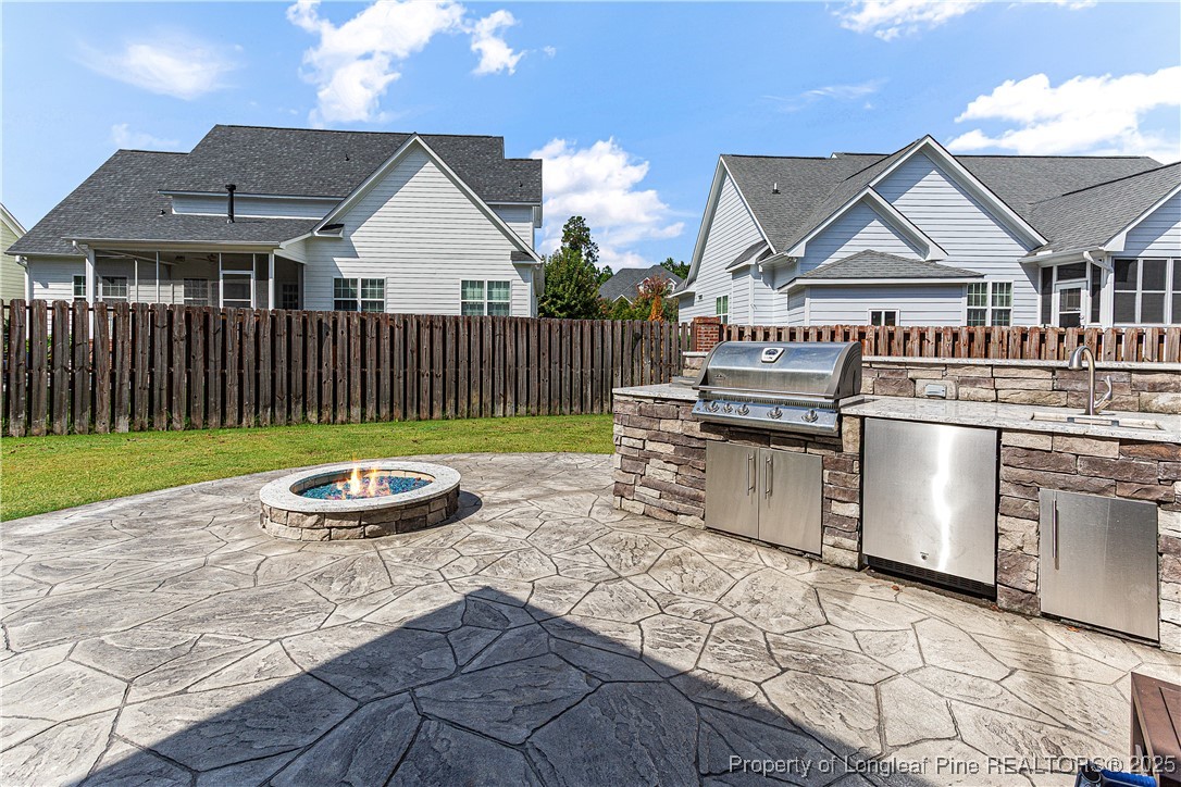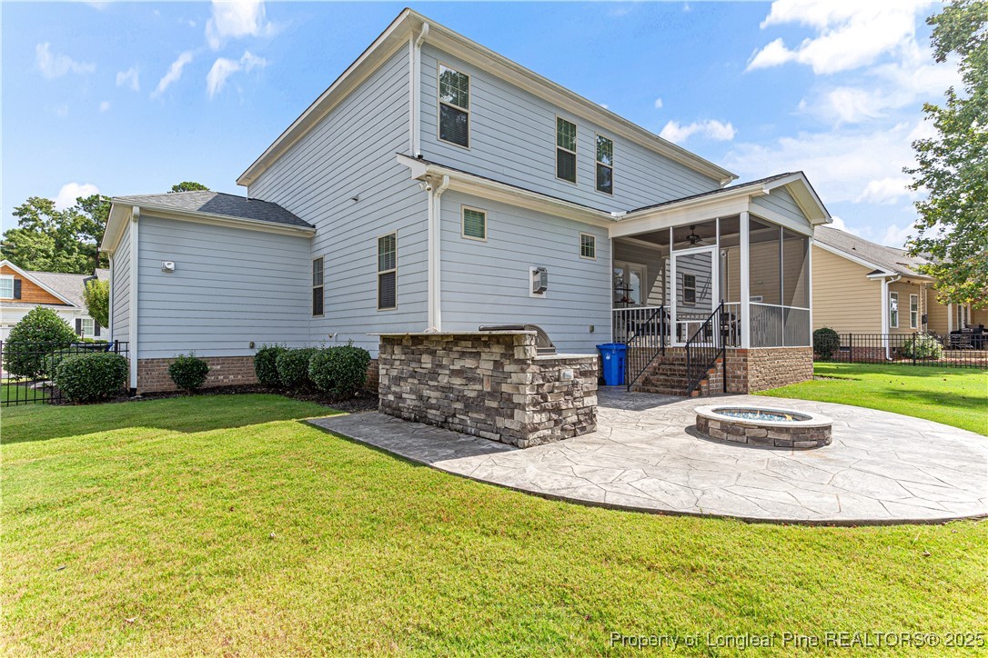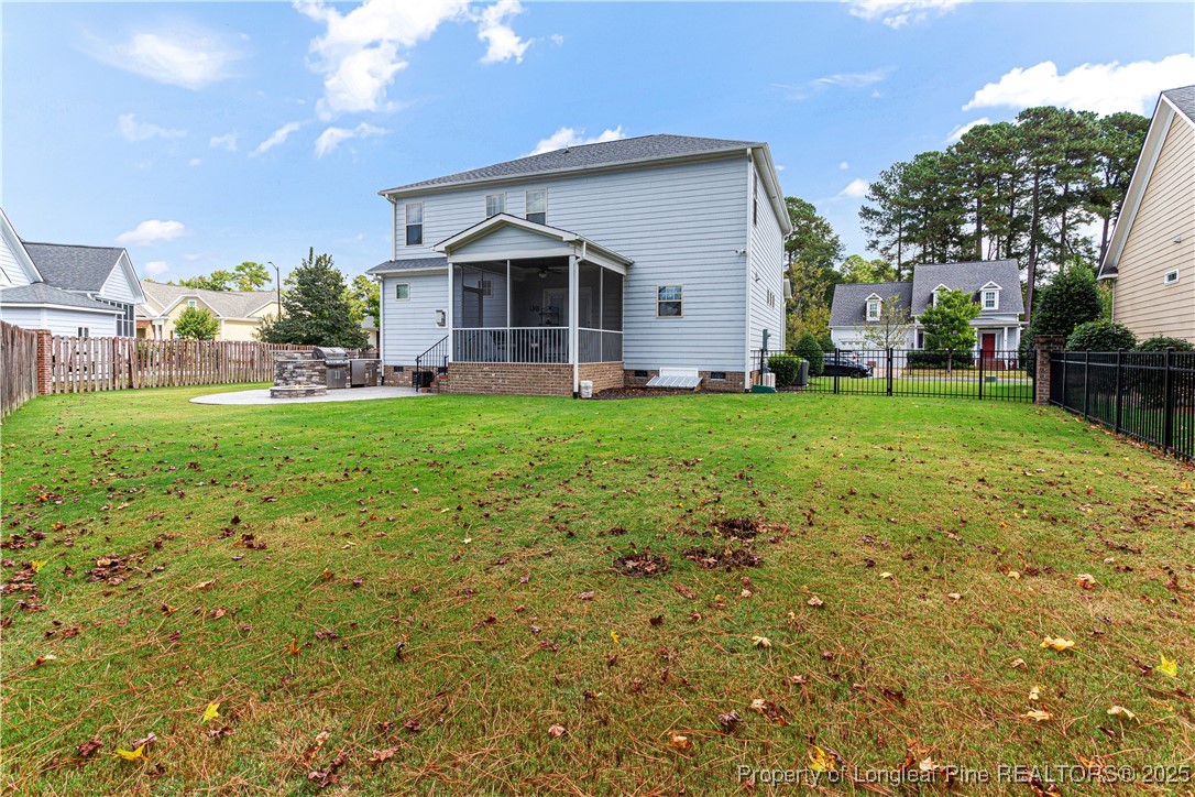 Beautiful 4 bedroom, 2.5 bath Craftsman home located in a gated community in Fayetteville. The kitchen features quartz countertops, shaker-style soft-close cabinets, large pantry, natural gas cooktop with industrial hood, farm sink, and oversized island. The living room includes a fireplace with built-in cabinets, and the main level also offers a dining room, office, half bath, and drop zone. Hardwood floors throughout the main level. Enjoy outdoor living with a full outdoor kitchen that includes a refrigerator, sink, and gas grill, plus a glass fire pit and large stamped concrete patio. The screened-in porch has a stained beadboard ceiling, ceiling fan, and pre-wired TV setup. Conveniently located near schools, shopping, and downtown.