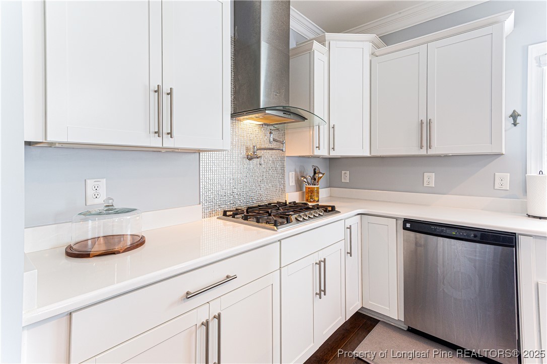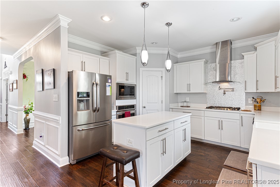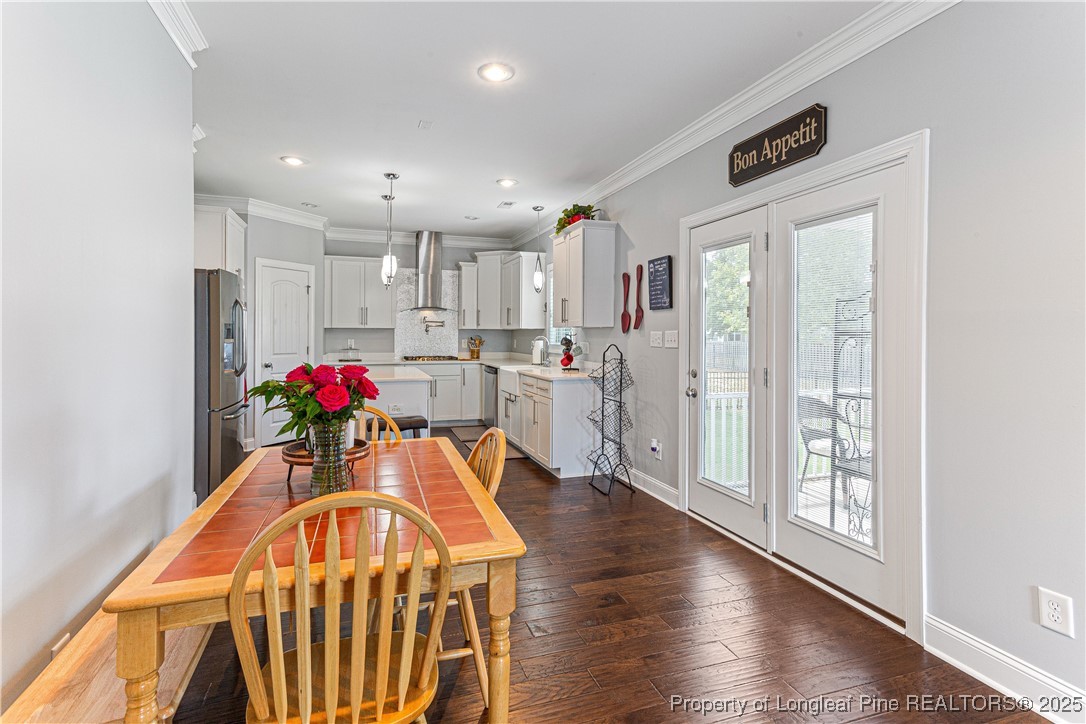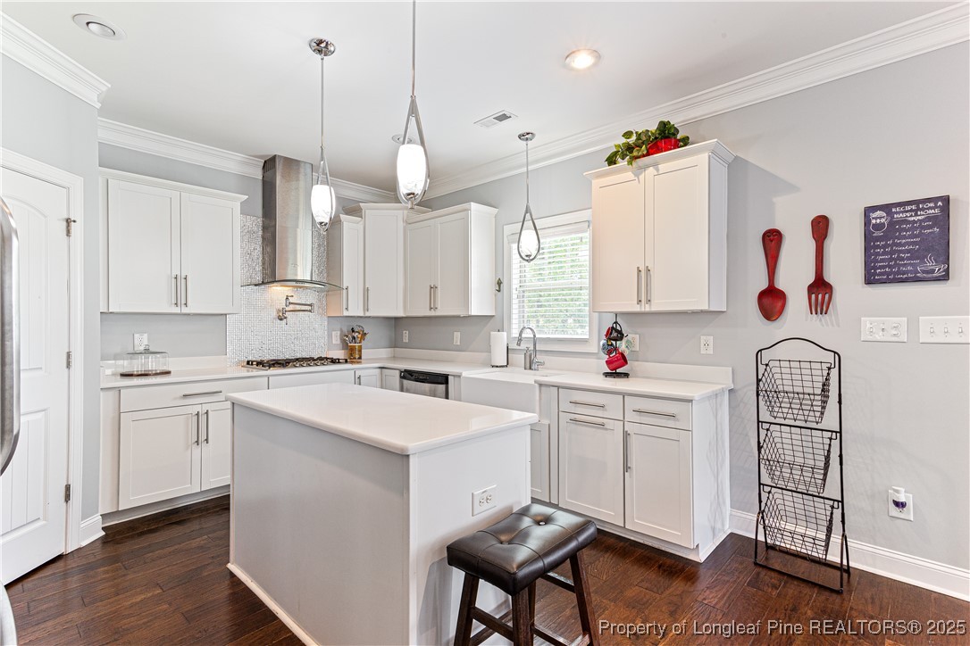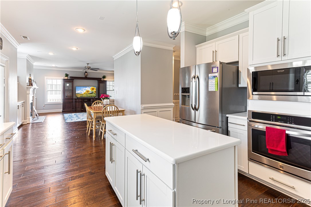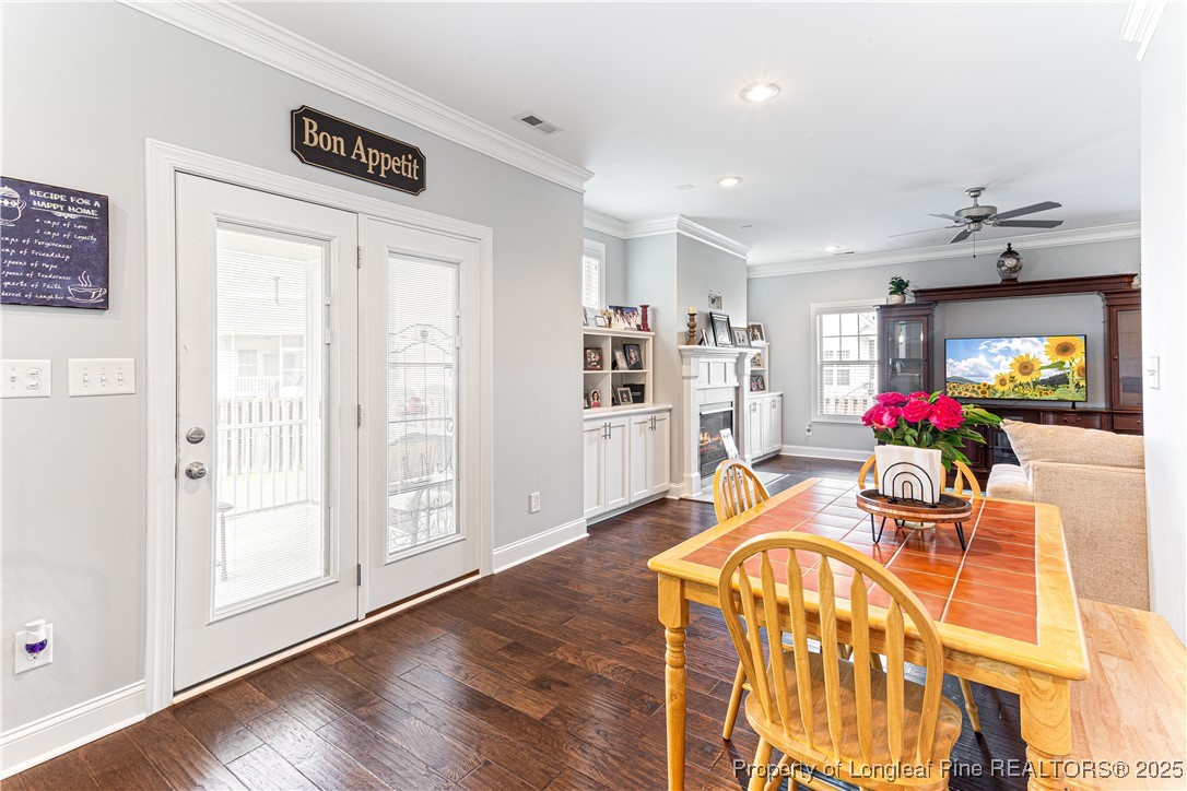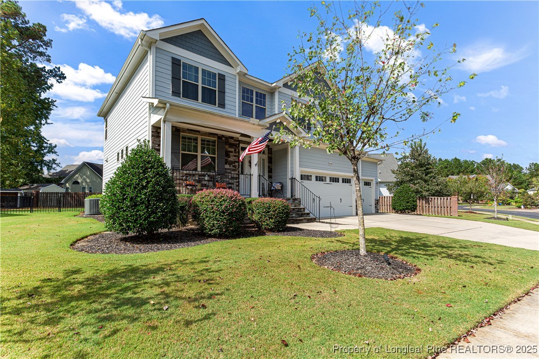 Beautiful 4 bedroom, 2.5 bath Craftsman home located in a gated community in Fayetteville. The kitchen features quartz countertops, shaker-style soft-close cabinets, large pantry, natural gas cooktop with industrial hood, farm sink, and oversized island. The living room includes a fireplace with built-in cabinets, and the main level also offers a dining room, office, half bath, and drop zone. Hardwood floors throughout the main level. Enjoy outdoor living with a full outdoor kitchen that includes a refrigerator, sink, and gas grill, plus a glass fire pit and large stamped concrete patio. The screened-in porch has a stained beadboard ceiling, ceiling fan, and pre-wired TV setup. Conveniently located near schools, shopping, and downtown.