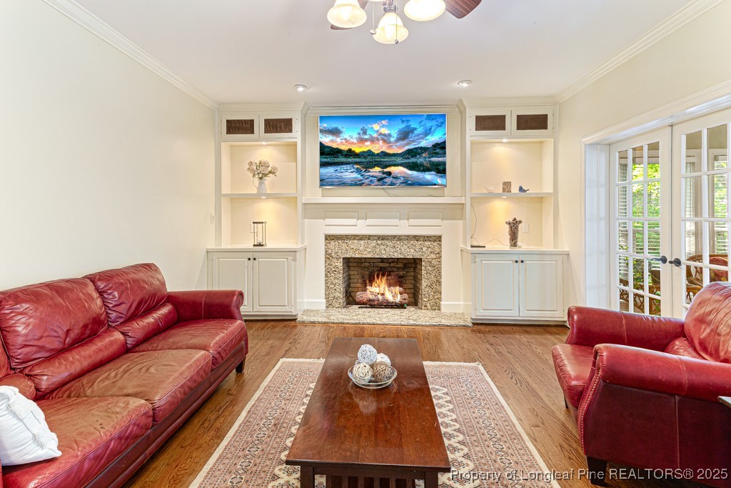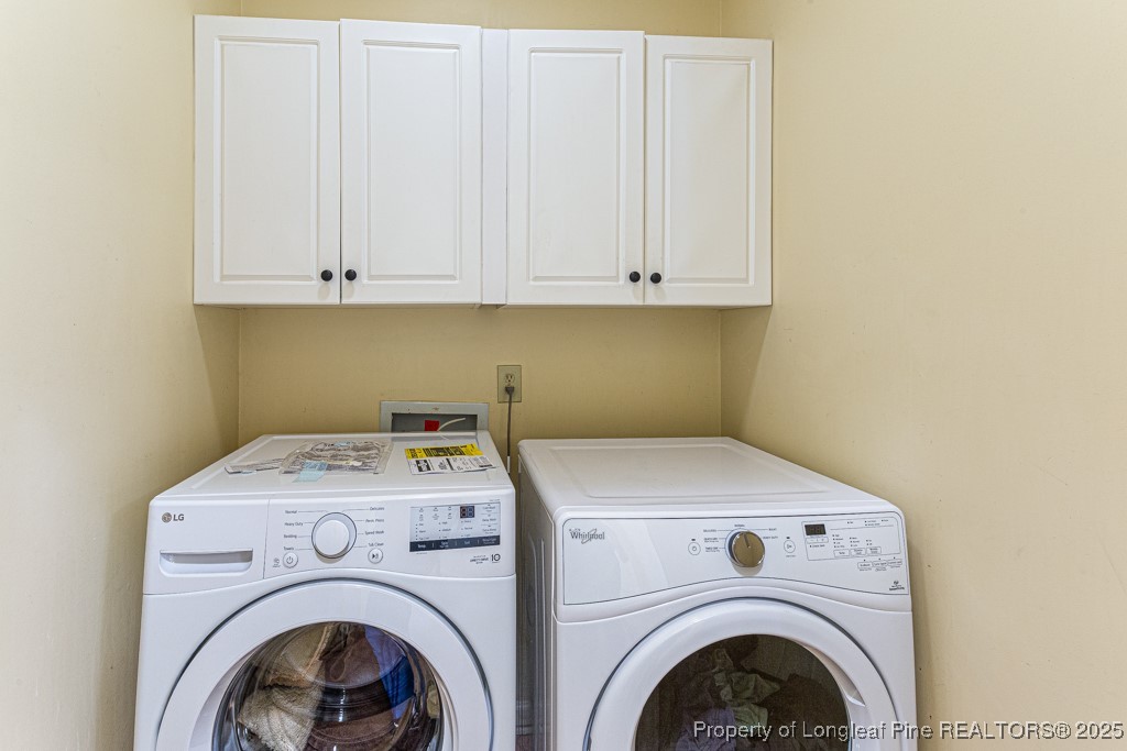 $5,000 Buyer Incentive! Executive 2-story brick home, featuring 4 bedrooms, 4 full baths, and an oversized bonus room. Main level offers a guest bedroom with full bath, office, formal dining, and spacious family room with built-ins and gas fireplace. Gourmet kitchen includes painted cabinets, dual convection ovens, gas range with vented hood, built-in microwave, and KitchenAid refrigerator. Upstairs owner's suite boasts a custom walk-in closet, tiled shower with 4 jets, soaking tub, and dual vanities. Two additional bedrooms each have bath access. Huge bonus room with built-ins, storage, and private staircase. Enjoy the landscaped backyard with brick privacy wall and large fire pit--perfect for entertaining. Oversized double garage with room for storage or workshop. Washer & dryer included. minutes from Fort Bragg, shopping, and dining. Move-in ready!
