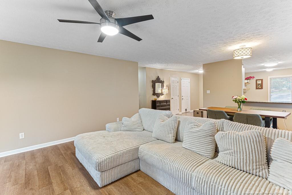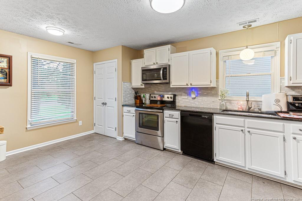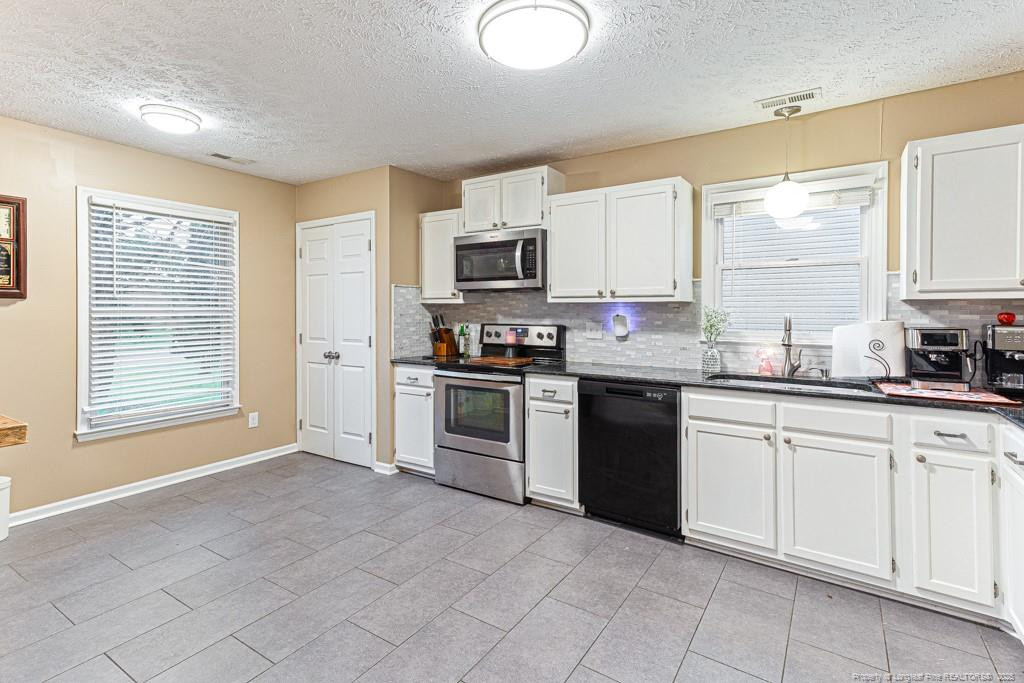 Step into this stunning 3 bedroom 2 bath home featuring an open floor plan with stylish laminate flooring throughout the main living areas. The bright kitchen boasts white cabinetry, granite counters, stainless steel appliances, and a functional layout perfect for entertaining. The spacious primary suite offers a large bedroom, walk-in closet, and updated bathroom with modern vanities and light fixtures. Enjoy the convenience of an oversized garage with two garage doors, offering ample space for storage or projects. The large, private backyard is fully fenced--ideal for relaxation, pets, or outdoor gatherings.This home is truly move-in ready and waiting for its next owner!
