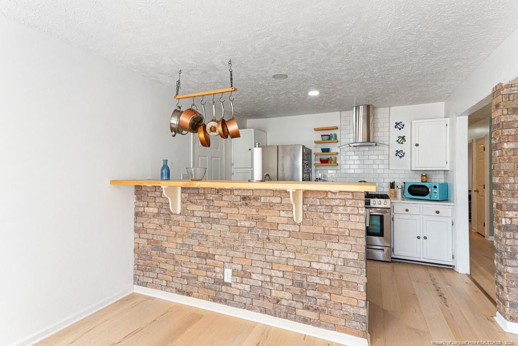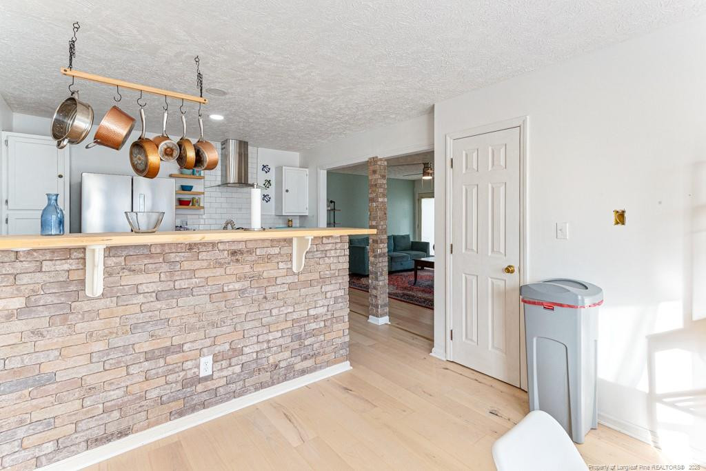 Renovated 3 bedroom, 2 bath home, replaced with tile shower, new bathroom, Bluetooth hook up in Master bath, new vanity with deep bowl, sink, and faucet, replaced lighting in the house with recessed lights, hardwood floors, and fan and living room, wall was Kitchens entrance & added customized brick column, front ceiling cabinets, replace hanging pot station to open the room, butcher block counter bar added & countertops, replaced with quartz and added deep commercial stainless sink, refrigerator and gas stove were added and vented hood, subway tile added, converted the garage to theater room & Added duct vents & wood flooring, updated interior paint throughout. Great house and ready for a new owner.