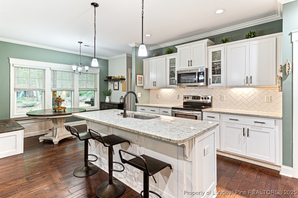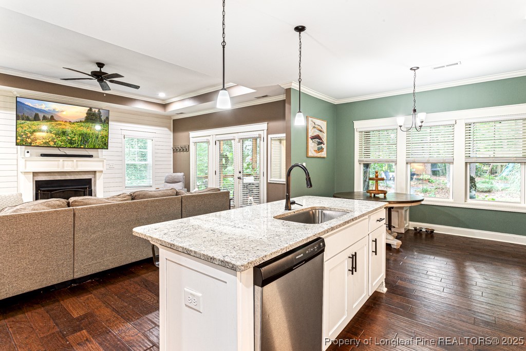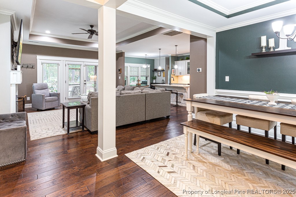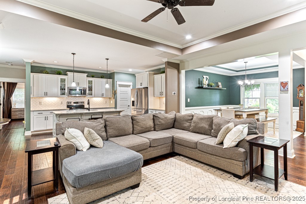 Welcome to Whispering Pines! This beautiful 4-bedroom, 2.5-bath home with great views of Thaggard Lake from front of property, perfect for boating, swimming, or simply soaking in the scenery. Inside, the open layout features a large family room with a fireplace, formal dining room, and beautiful engineered hardwood & scraped flooring throughout the main floor. The spacious kitchen includes a large island and flows seamlessly into the living space, making it ideal for entertaining.
