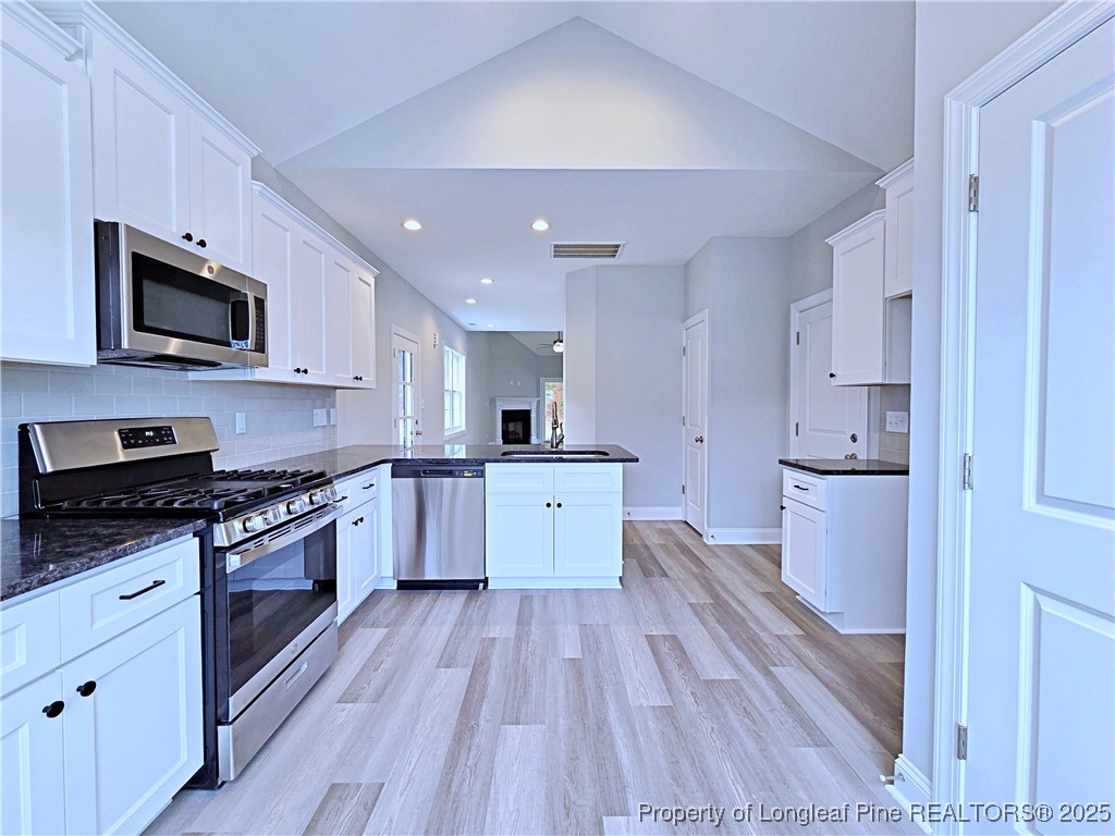 Up to $15,000 in Incentives with Alpha Mortgage, Preferred Lender! View this Beautiful Gated Townhomes, inside The Ridges at Kings Grant, 3 bedrooms, 2.5 baths, includes community pool and walking trails, open Family room with vaulted ceilings and fireplace. Kitchen includes granite countertops, and breakfast bar with stainless steel appliances, including a gas range, Owner suite is on the first floor and includes large walk-in closet with separate shower and door vanities, upstairs includes two bedrooms with a full bath and a loft area the view of the family room, and enjoy the covered porch and yard space. Pet Fencing is available for the Rear Yard. Neighborhood is next to 295 and minutes to Fort liberty